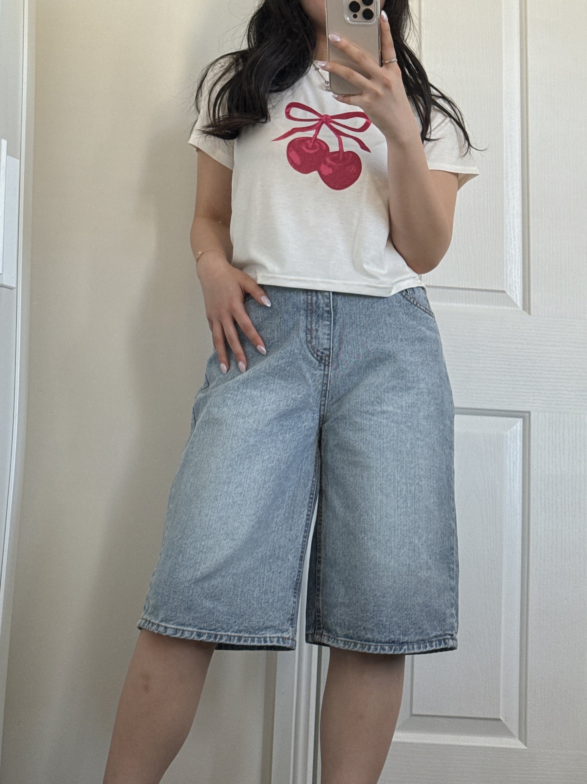 - Y2K-inspired bermuda denim with a relaxed, effortless vibe. Designed with a hidden waistband for a clean silhouette and comfortable fit. The concealed band keeps the look sleek while adding extra ease for everyday wear. A versatile piece that pairs well with any top, from cropped tees to hoodies. ✨